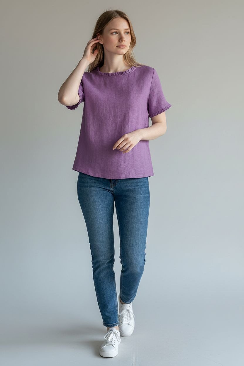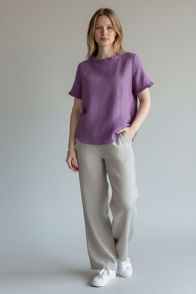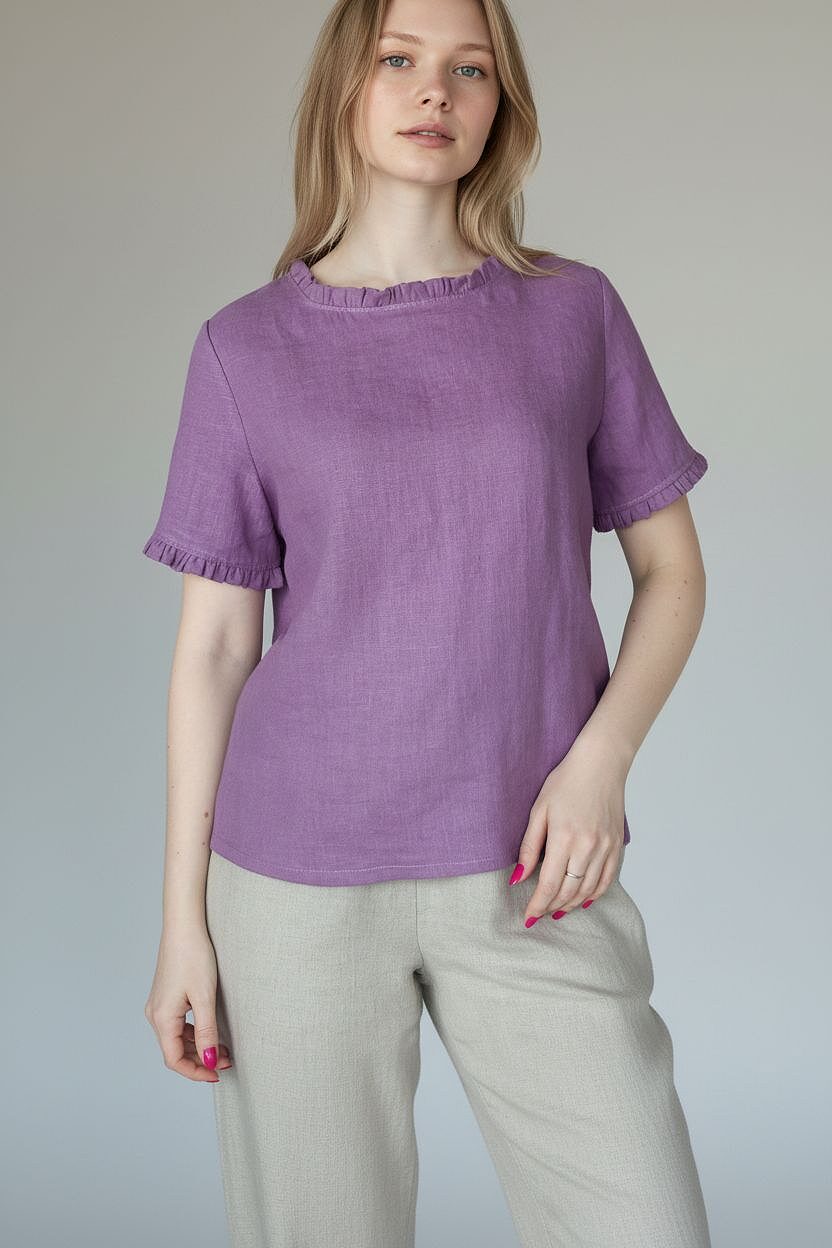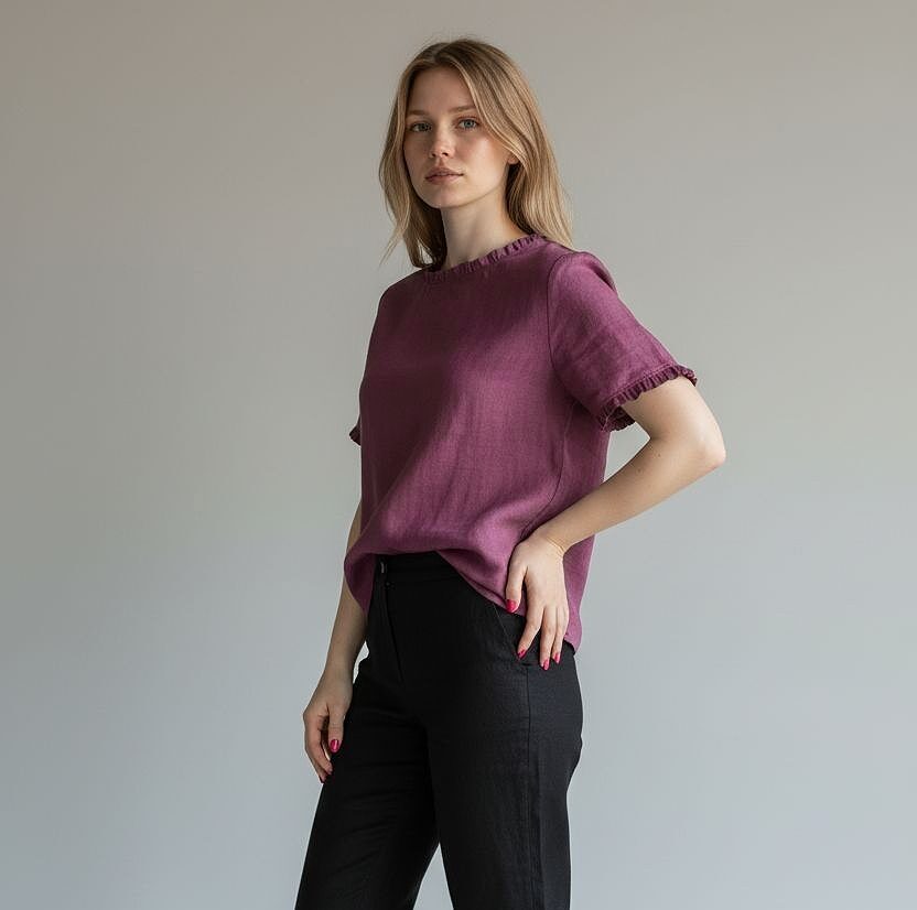 Moteriška lininė palaidinė, kuri puikiai suderina patogumą ir stilingumą. Laisvas kirpimas ir subtilūs raukinukai prie kaklo bei rankovių suteikia lengvumo ir elegancijos.