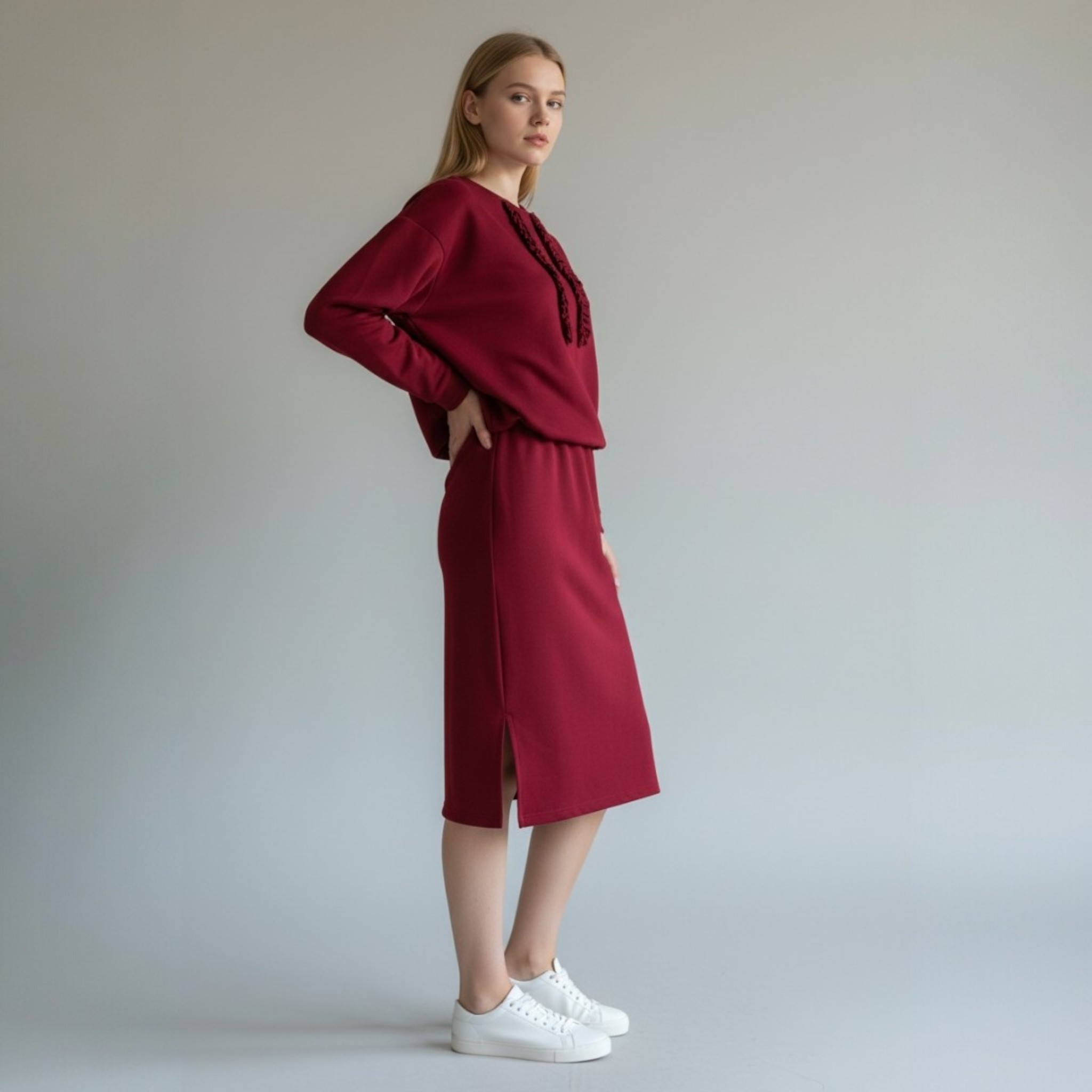 Patogus ir stilingas – puikus pasirinkimas vėsesniems orams. Kostiumėlį sudaro džemperis ir sijonas, kuriuos galima nešioti kartu arba derinti atskirai. Siuvame Lietuvoje, todėl galime pakoreguoti kostiumėlį pagal jūsų išmatavimus – susisiekite, mielai padėsime. Išsiuntimas per 5–10 darbo dienų.