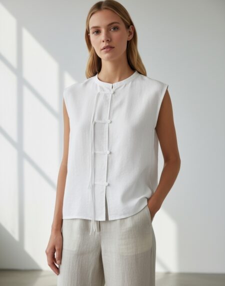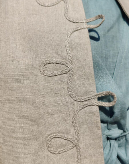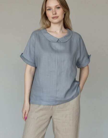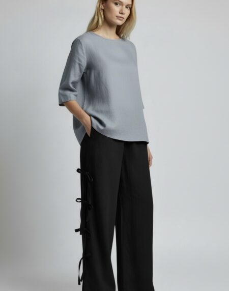 Plačios lininės kelnės su šoninėmis uždėtinėmis kišenėmis