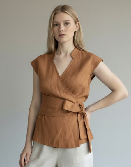 Susagstoma lininė palaidinė trumpomis rankovėmis